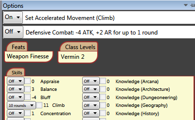 4) even though I’ll only have to make that at least once every move action (or if the difficulty changes past my previous check’s value) I’ll get bored quickly rolling that quickly, so I change the Climb skill to a take 10 for 10 rounds