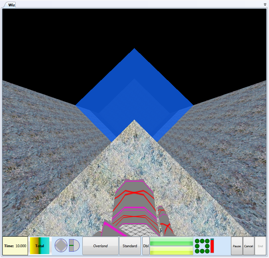 7) Finally a visual from the character after plunging and sinking. This image exposes a small deficiency in the visualization system…namely that under water screen masks (should be a bluish hue) are only applied directly against a surface boundary at the moment, and the character is actually only adjacent to a surface edge (the edge of the platform)